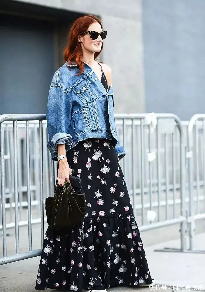 最浅近的让牛仔外衣呈现出女东说念主味的步伐等于用牛仔外衣搭配连衣裙,大长裙子的裙摆与短款的牛仔外衣近似到通盘有一种立场上的碰撞感,用浅近的印形势样搭配上溜肩穿搭的步地,险些又飒又A。